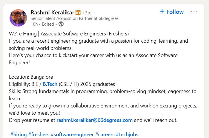 66degrees Off Campus Hiring – Associate Software Engineers (Freshers)
