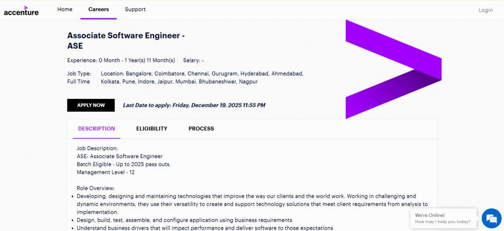Accenture New Mass Hiring 2025 – Advanced Associate Software Engineer (AASE) Role