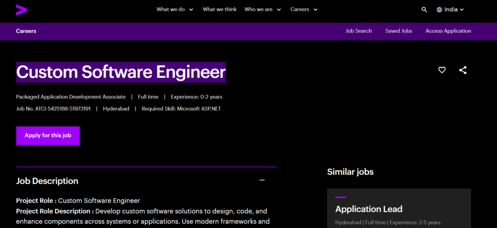 Accenture New Off Campus Hiring – Custom Software Engineer Role