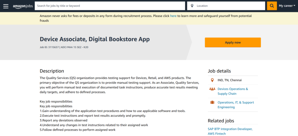 Amazon New Biggest Hiring: The Quality Services (QS) team is looking for energetic graduates for the position of Device Associate on The Digital Bookstore App. This exciting opportunity is perfect for those who are interested in the career path of Quality Assurance (QA) while working with world-class digital products in a frantic, technology-driven environment.