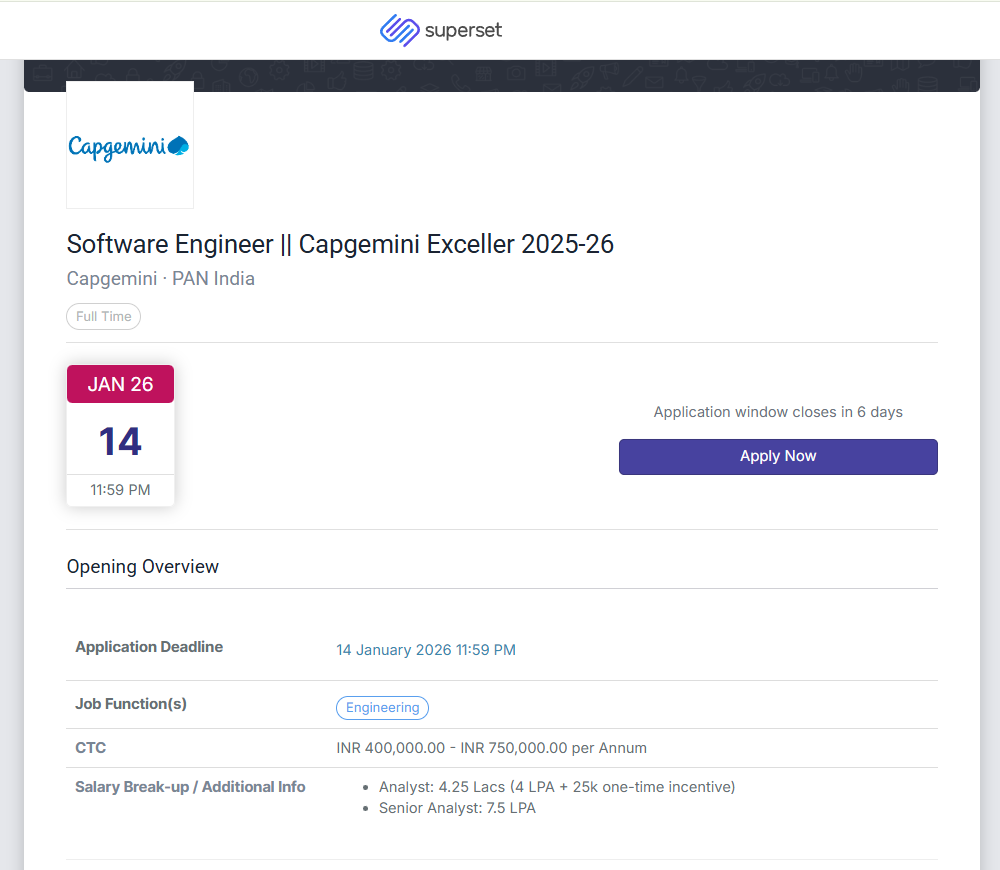 Capgemini Off Campus Hiring – Software Engineer – Capgemini Exceller 2025-26