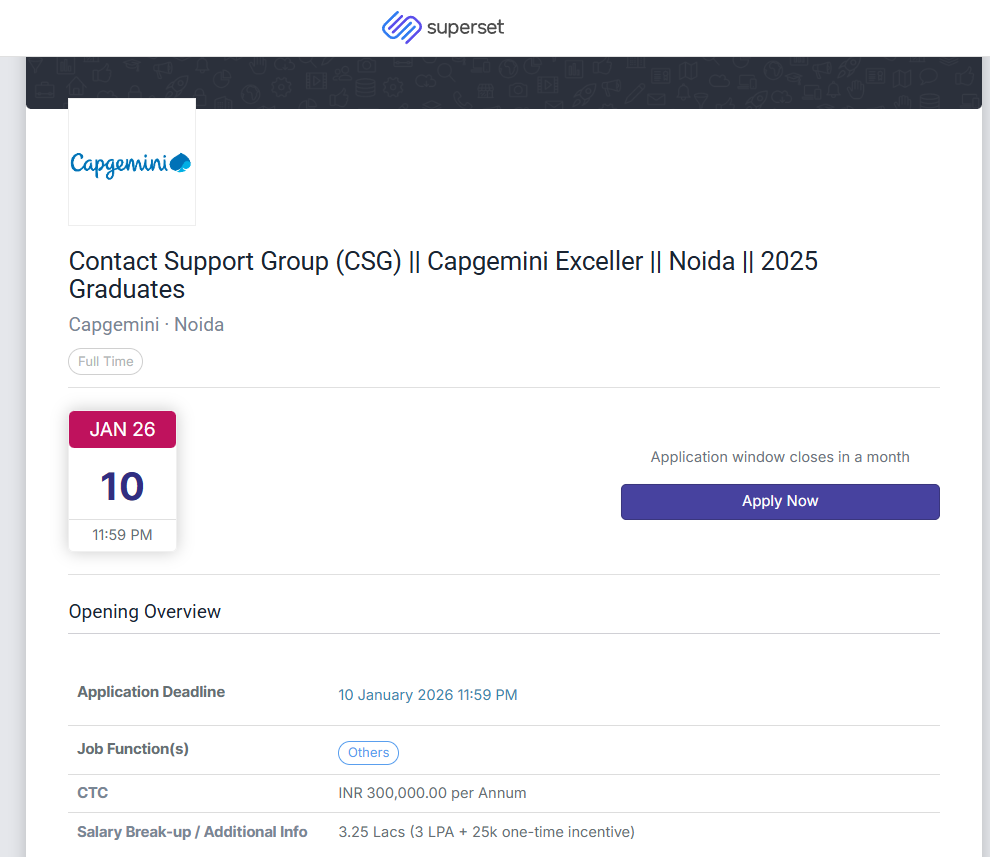 Capgemini Off Campus 2025 Drive – Contact Support Group Role – Job Opportunity