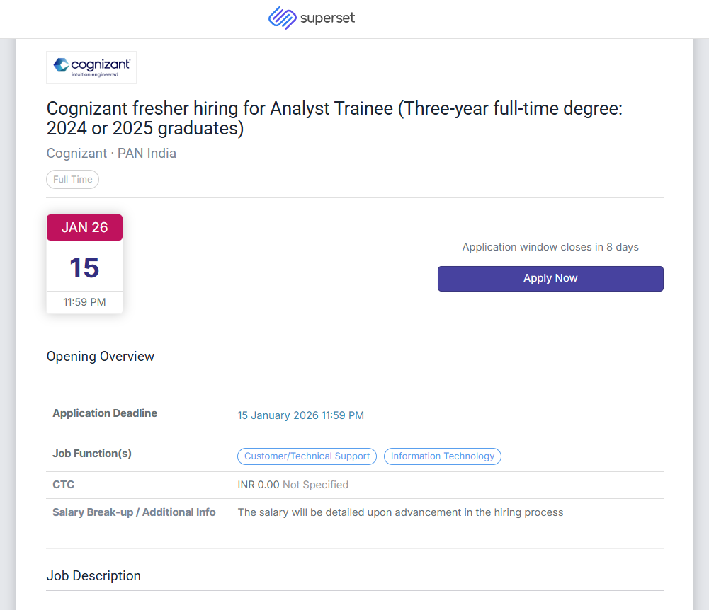 Cognizant Latest New Hiring Drive – Fresher Hiring – Analyst Trainee for 3-Year Degree Graduates | PAN India