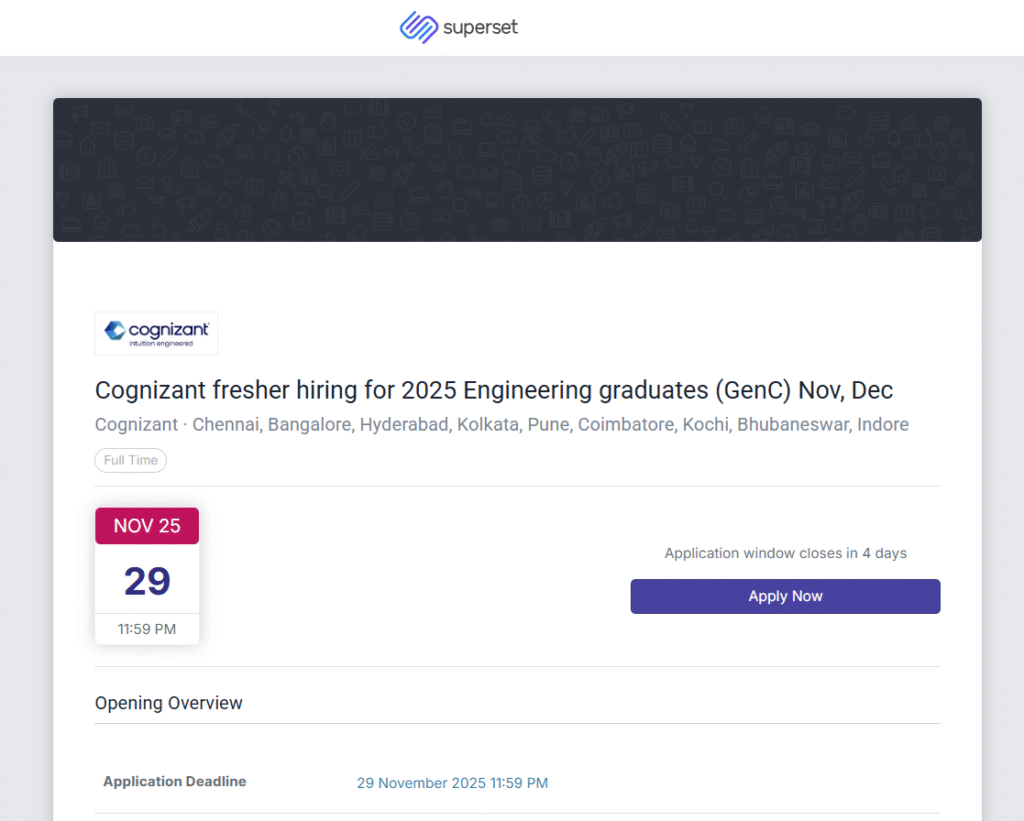 Cognizant New Big Hiring 2025 – Engineering Graduates | GenC Nov, Dec Role