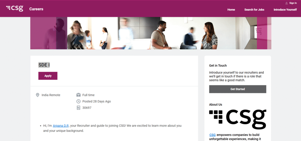 Csg New Hiring: A top beginning position in the field of Software Development Engineer (SDE I) is available to motivated graduates with a desire to make a successful career in the field of software design, development and maintenance. The job focuses on creating solutions that aid in the development of large-scale telecom charging and billing systems. This job is ideal for those who love solving complicated problems, exploring new technologies, and working with teams of professionals across many fields.