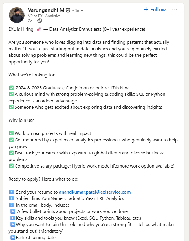 EXL Off Campus Drive – Data Analytics Enthusiasts Role