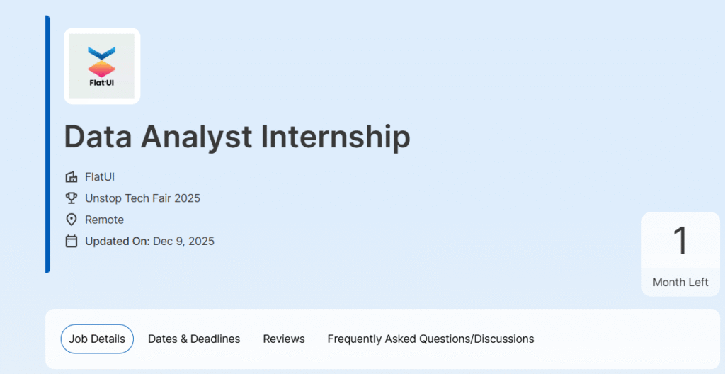 Apply now until Unstop Tech Fair 2025 to begin your job in the field of data analysis and get an industry-ready education with FlatUI.