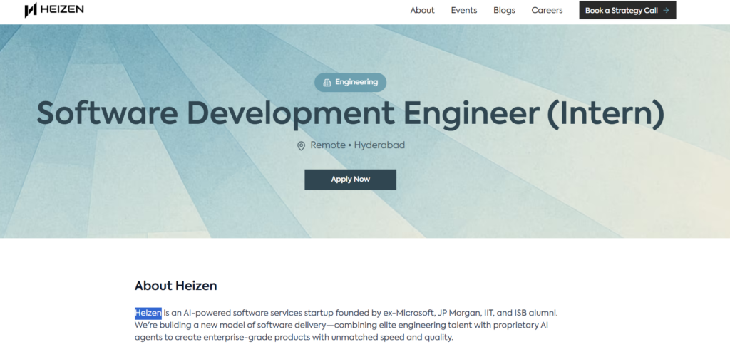 Heizen Off Campus Hiring: Heizen is an AI-powered startup for software services created by former students from Microsoft, JP Morgan, IIT, and ISB. It is revolutionising the process of technology delivery through the combination of top engineering skills with cutting-edge AI technology. The company’s focus is on creating high-end products for enterprises that provide extraordinary speed, efficiency and high-quality. Through an innovative relationship model of partnership, the business works with top companies and startups to solve complex business problems, from modernising outdated systems to developing essential software solutions.