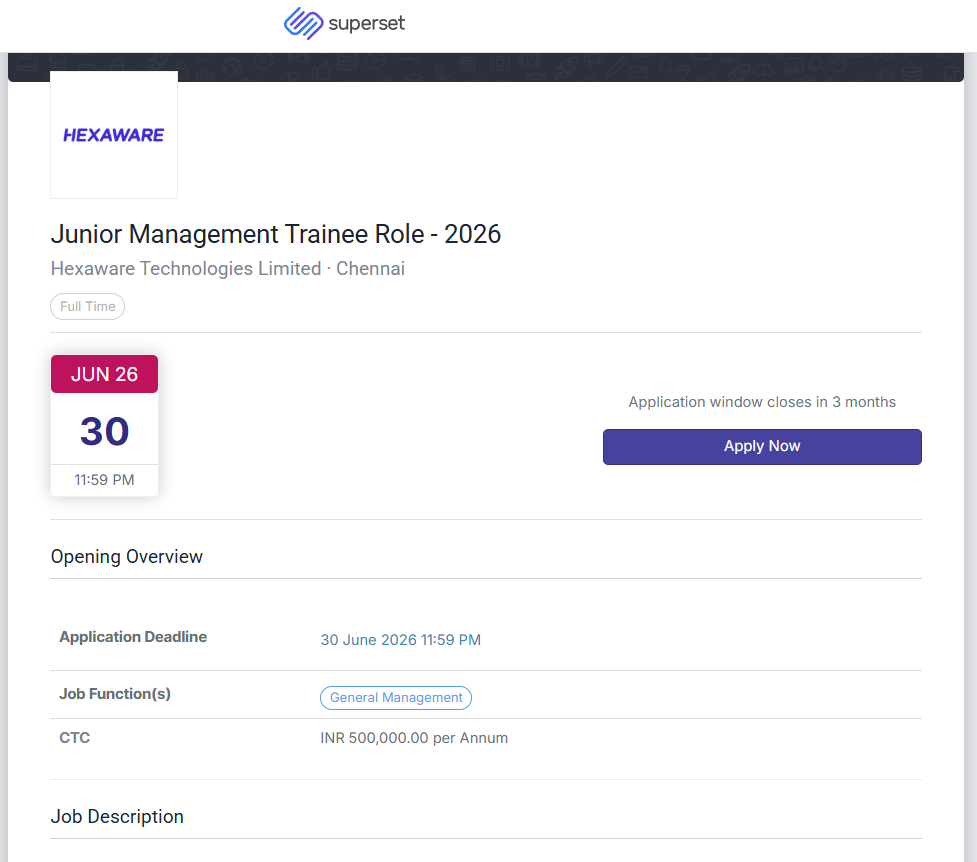 Inquiring and eligible qualified 2026 MBA batch students are eligible to apply for the junior management trainee job before the closing date. Look up Hexaware career opportunities or go to the official portals for careers for applications.