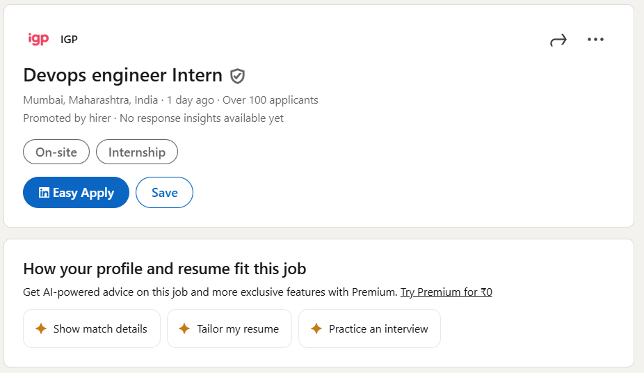 - Job Title: DevOps Engineer Intern – Mumbai, Maharashtra