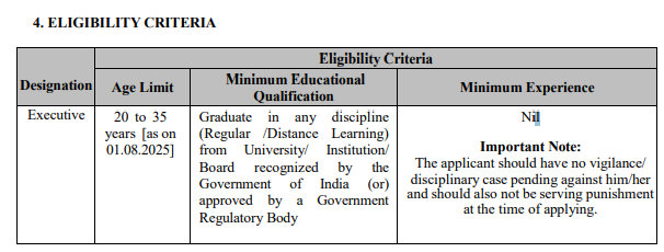 - Academic Qualification: Achieved a degree from any field (regular or distance learning) from an institution, university, or body recognised in the Government of India or approved by a Government Regulatory Body.