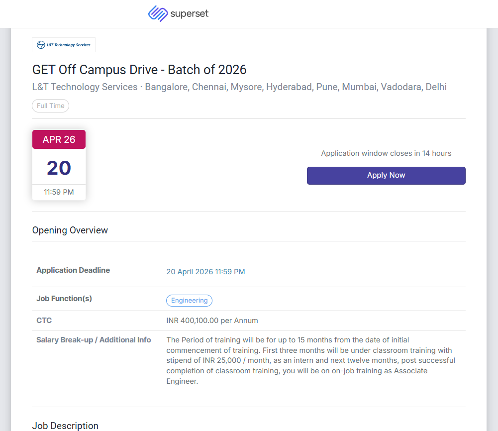 Eligibility Criteria for L&T Technology Services Off-Campus Drive 2026