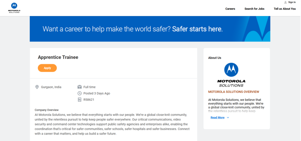 Motorola Off Campus Drive: A highly effective Sales Intern opportunity is now available in Gurgaon to assist with the Defence Business Sales function. The full-time Apprentice Trainee job that was posted just 3 days ago under requisition number R58621 is suited to fresh graduates looking to build an understanding of the B2G market, sales and outreach to customers across India’s defence ecosystem. The job offers hands-on experience to the sales process, from the discovery of opportunities on government portals to support for proposals and hygiene in CRM.