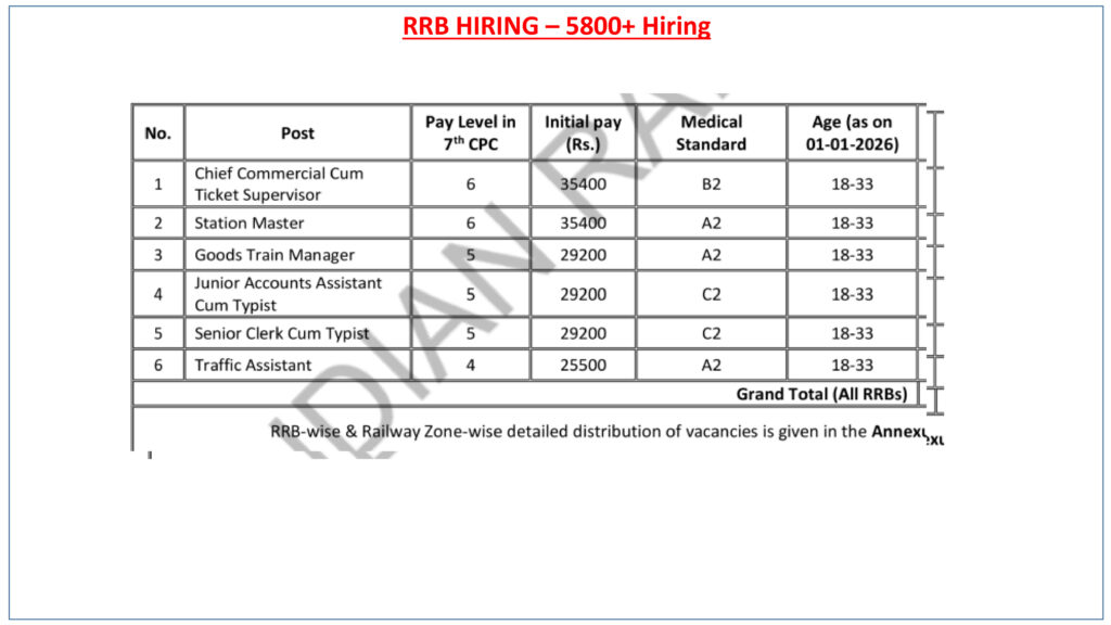 From the 1st of January, 2026, the applicants’ age should be between 18 and 33 years old. Category-wise relaxation applies as per government norms — 3 years for OBC, 5 years for SC/ST, and applicable extensions for PwD and ex-servicemen.