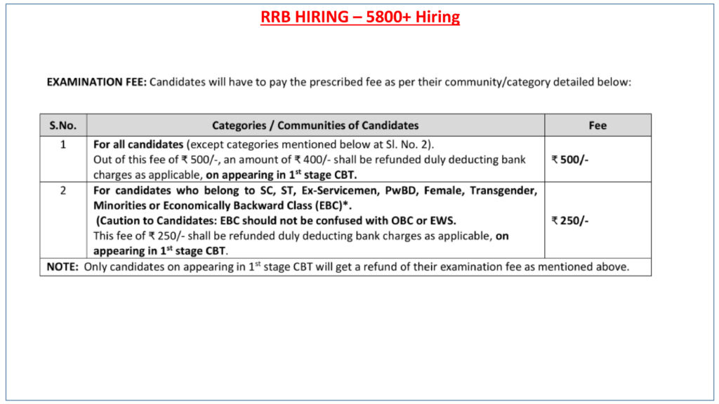 SC / ST / EBC | Rs. 250 | Refund of Rs. 250 |