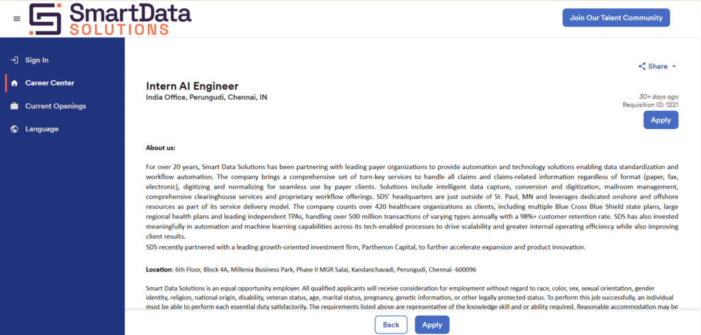 Smart Data Solutions Hiring Drive – Intern AI Engineer