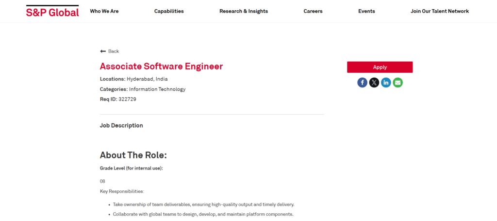 S&P Global New Big Hiring Associate Software Engineer  – Apply Link