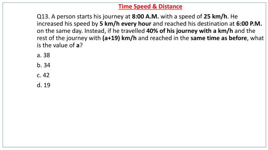 - Time, Speed & Distance