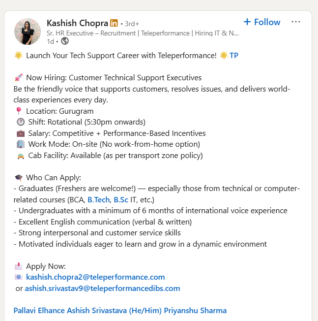 Teleperformance Off Campus Hiring: Start your journey to a rewarding career. Teleperformance is a world company that is a leader in digitally connected business solutions. Teleperformance is expanding its customer service division and is offering a thrilling chance for young professionals to become Customer Technical Support executives within Gurugram. This job will provide an exciting atmosphere where technical knowledge and the ability to engage customers are combined to provide world-class customer support.