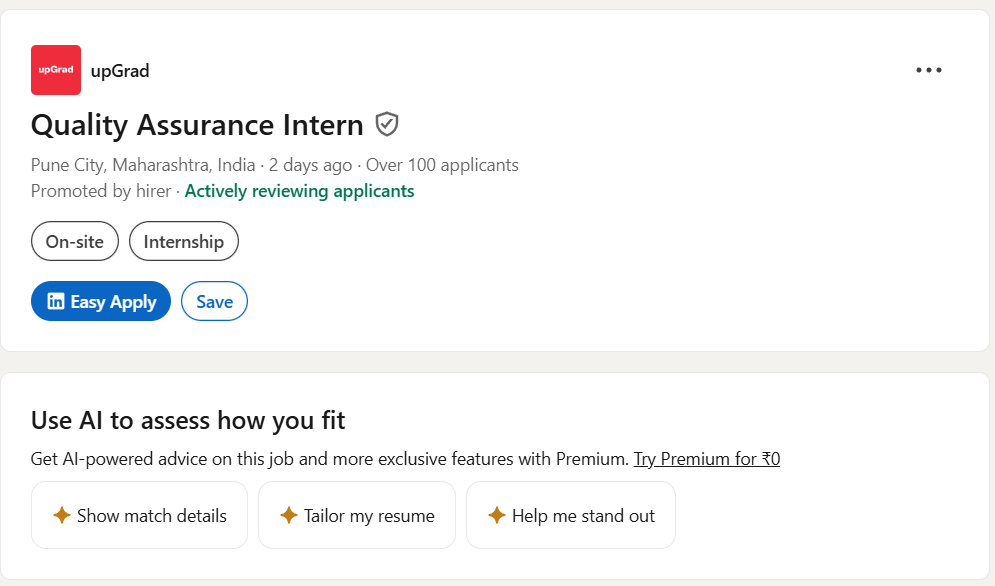 UpGrad Off Campus Drive – Quality Assurance Intern Role