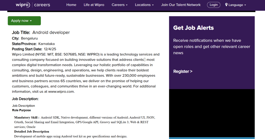 Wipro Android Developer Hiring: Wipro is seeking to hire an Android Developer based in Bengaluru. The job focuses on developing, testing and enhancing mobile apps using modern Android technology to provide a smooth and powerful experience.